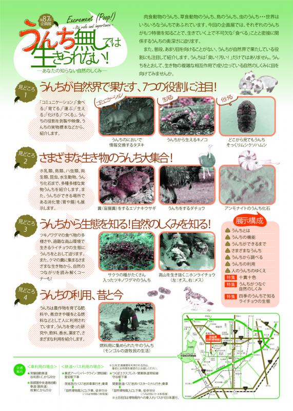 ミュージアムパーク茨城県自然博物館にて、令和5年7月8日(土曜日)より、第87回企画展「うんち無しでは生きられない!-あなたの知らない自然のしくみ-」が開催されています。